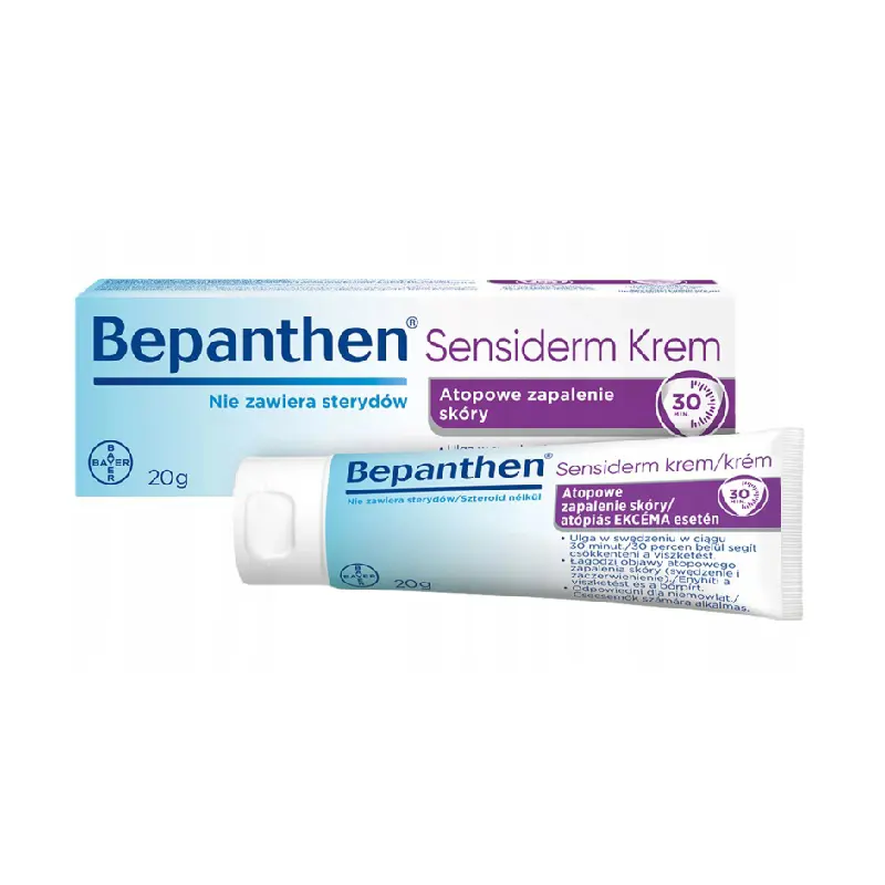 Krem do skóry z atopiom Bepanthen Sensiderm to kosmetyk, którego nie mogło zabraknąć w naszym rankingu na styczeń 2026. Kosmetyk został opracowany z myślą o szybkim łagodzeniu swędzenia, zaczerwienienia i suchości skóry w okresach zaostrzeń AZS. Produkt nie zawiera sterydów i może być stosowany zarówno u dzieci, jak i dorosłych, już od 1. miesiąca życia.