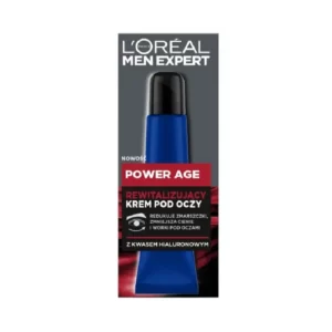 Do najlepszych kremów pod oczy dla mężczyzn w rankingu 2026 zalicza się również L’Oréal Men Expert Power Age. Ten rewitalizujący krem stworzony został z myślą o suchej skórze z widocznymi oznakami starzenia w okolicy oczu. To propozycja dla mężczyzn, którzy oczekują jednocześnie działania przeciwzmarszczkowego i efektu wyraźnego odświeżenia spojrzenia.
